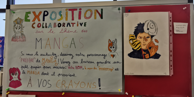 Les élèves volontaires ont été mis à contribution par Mme Mraizika, professeure documentaliste pour réaliser une exposition collaborative sur le thème des mangas.